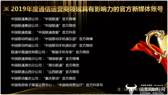 附“2019年度通信运营商领域具有影响力的新媒体账号” 获奖名单: