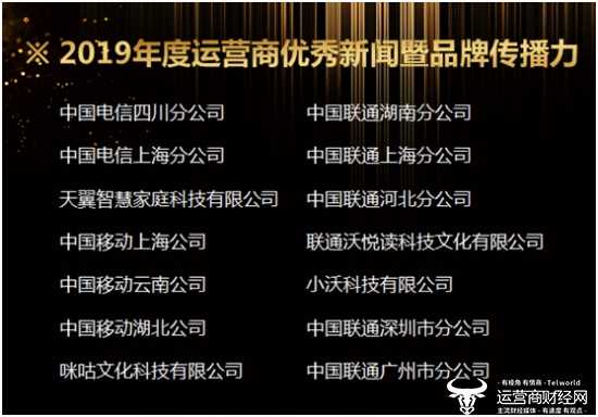 附“2019年度运营商优秀新闻暨品牌传播力”获奖名单: