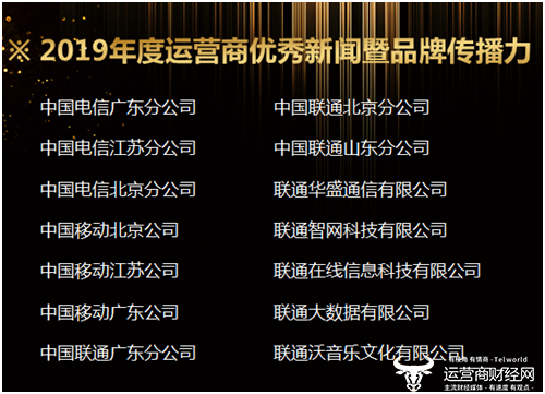 附“2019年度运营商优秀新闻暨品牌传播力”获奖名单: