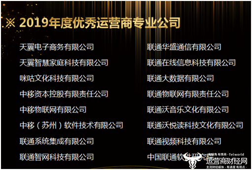 附“2019年度优秀运营商专业公司”获奖名单: