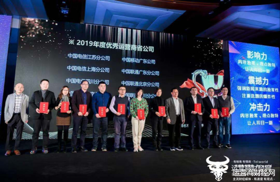 1月12日,在运营商财经网举办的2020中国财经TMT“领秀榜”盛典上,正式公布了11项大奖获奖企业名单,包括“2019年度优秀运营商省公司”、“2019年度最具创新力运营商省/专业公司总经理”、“2019年度运营商优秀新闻暨品牌传播力”、“2019年度优秀运营商专业公司”等。