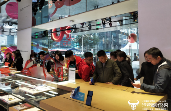 OPPO深圳超级旗舰店Reno3系列展台前选购手机的消费者