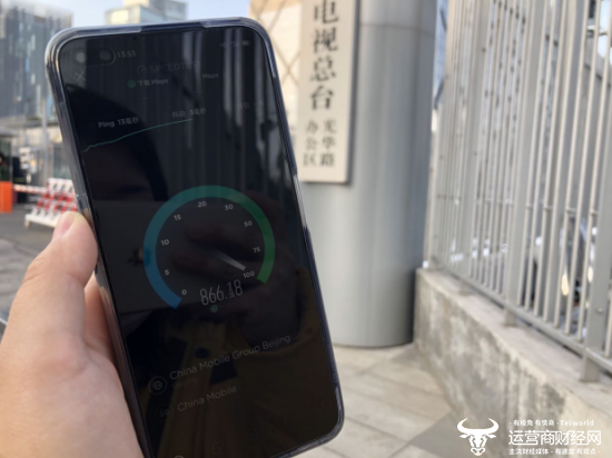测试的首站,我们来到中央广播电视总台。在光华路上的测试结果显示,这里的5G下载速度最高达到了999 Mbps,简直惊呆众多小伙伴!经过多次测试,数据基本维持在570--1000 Mbps。