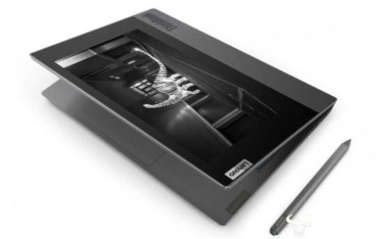 这款笔记本电脑配备由联想与LG Display合作生产的折叠式OLED显示屏,重量不到1千克。显示屏可多方向多角度自由切换,在展开的状态下,它可以看做是一台13.3英寸的触控平板电脑,而折叠以后,则变成了9.6英寸带虚拟键盘的笔记本电脑。