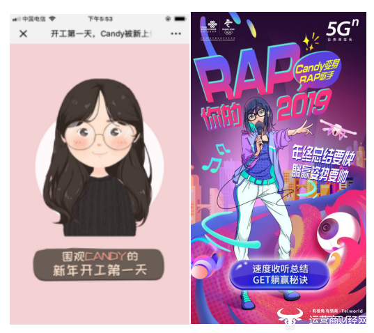 2019年年初,湖南联通首次做出全新尝试,打造Candy虚拟人物形象,从此,Candy作为一名普通上班族正式与用户见面。在2019年春节后第一天,湖南联通牢牢把握住用户春节长假后无心上班的痛点,以Candy第一人称视角拍摄发布《开工第一天,Candy被新上任boss独留办公室》一镜到底实景视频,趣味呈现公司小职员Candy的上班第一天迟到后的奇葩遭遇;2019年年末,湖南联通再次延续Candy这一人物IP话题,将Candy化身为RAP歌手,为湖南联通新年礼盒为其造势传播。