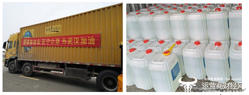(图:近日,苏宁已紧急调运约50吨消毒水驰援武汉地区。)