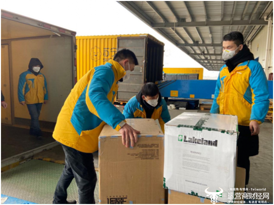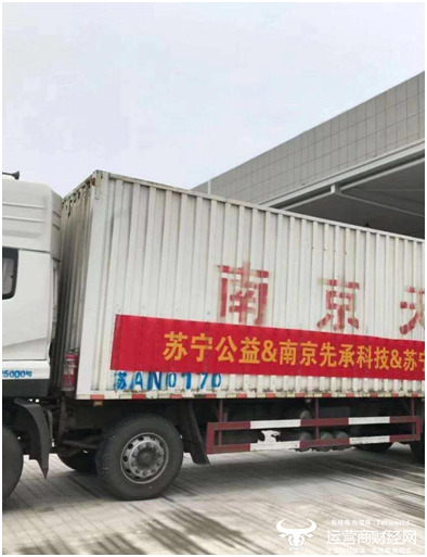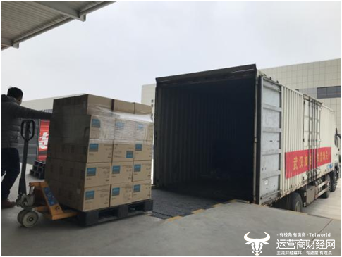 (图:苏宁捐赠的防疫物资正在装车,前往疫情中心武汉)