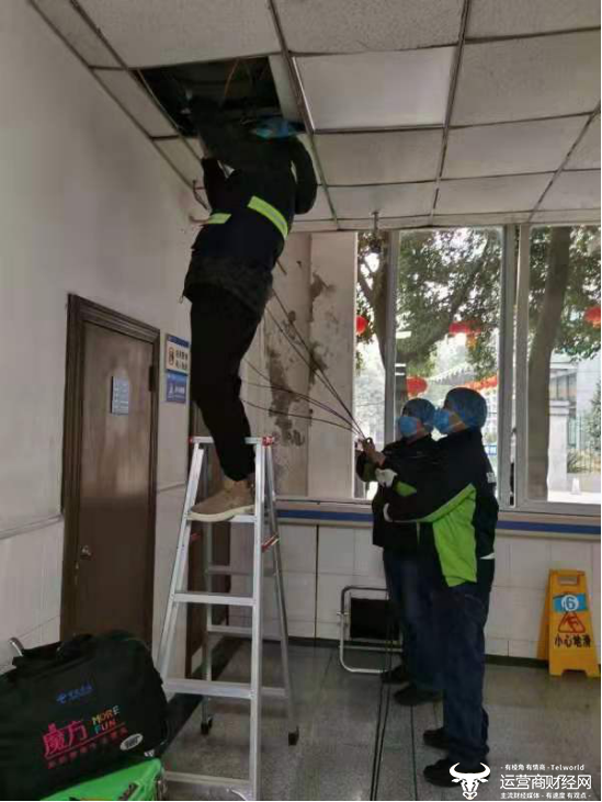 中国电信工作人员为宜宾市第二人民医院搭建通信网络