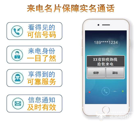 据悉,来电名片“疫情防控”业务使用非常简单,开通后各省防疫热线在拨打电话时,系统自动推送“疫情防控名片信息”到被叫手机用户屏幕,即可实现实名通话,在告诉接听方“是谁打来电话”的同时进行防疫政策宣导。
