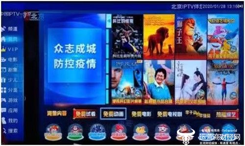 同时,考虑学生延迟开学等因素,即日起至2月29日TV学堂限时免费(原价29.9/月),清华北大名校名师、覆盖K12教育全面学习体系,让您足不出户就能免费享受海量权威教育资源。另外,北京联通IPTV有上千部免费国内外高清电影、超万集免费电视剧、上千部免费儿童动画片和儿童节目陪您度过这个假期。在这场没有硝烟的战争里,北京联通IPTV将利用自身业务特点服务好广大市民,度过一个健康平安的春节假期。