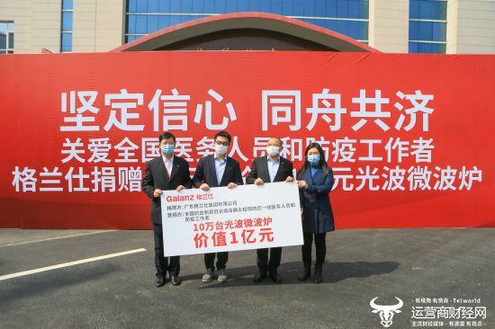坚定信心,同舟共济!新型冠状病毒感染的肺炎疫情牵动着企业公民的心,继1月23日、1月29日驰援武汉定点医疗机构, 2月1日“国民家电”格兰仕在顺德总部宣布捐赠以光波炉为代表的10万台价值1亿元的健康家电,以关爱全国一线医务人员和防疫工作者。