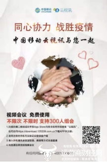 新型冠状病毒引发的肺炎疫情形势严峻,截止2月1日9点的全国数据,全国共确诊人数已经破万。疫情当前,全国人民、各行各业都在积极抗击新型肺炎,多地延期返工,开启“在家办公模式”。为保障各企业在线高效办公,中国移动现已免费开放云视讯App会议服务功能,在新型冠状病毒感染肺炎疫情期间,面向社会提供单次300人同时在线不限时、不限次的视频会议服务,免收功能费,助力全国打赢疫情防控阻击战。