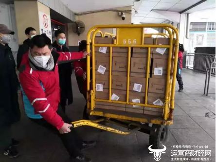距离武汉同济医院不到500米的京东物流宝丰营业部,今年的这个春节也异常繁忙,他们的配送片区里有武汉协和医院、武汉肺科医院、协和肿瘤医院等六七家医院,春节假期的几天里,每天都有来自全国各地的大批捐赠物资送抵这里,口罩、方便面、矿泉水、零食……什么都有。营业部负责人阮征每天都要接到很多电话,询问医院肯否送达,“我都会告诉他们,我们正常营业,交给医护人员的货可以放心,我们会第一时间配送。”