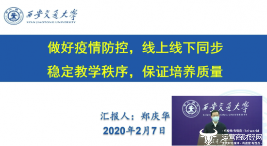 2月7日10点,通过中国电信天翼云搭建的在线课堂,西安交通大学5万名师生一起上了一堂不一样的超级大课。受疫情影响而留在全国各地家中的老师和学生,通过手机、电脑、IPD等终端,“坐”在同一个课堂里,在不集中、不面对面的情况下,听学校领导和老师介绍疫情防控工作情况,介绍疫情防控期间及新学期阶段总体工作及教学、科研、管理、服务等工作安排。