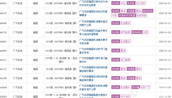 运营商财经网在查询车主对雅阁汽车的投诉信息时发现,在今年最新的投诉中,关于动力消失的投诉仍未消减,不仅如此,对于雅阁汽车发动机机油增多、漏油的投诉多达几十起。