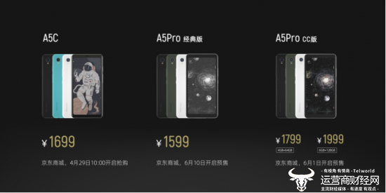 价格方面,彩墨屏手机同样做到了性价比极高。其中,A5C 4GB+64GB版本,售价699元,4月29日十点将在京东商城开启抢购;A5Pro经典版,4+64GB售价1599元,6月10日京东商城开启预售;还有A5Pro CC版,4+64GB售价1799元、6+128GB售价1999元,将在6月1日在京东商城开启预售。