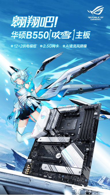此次发布会上,ROG发布了一款全新ROG STRIX B550-A GAMING吹雪主板。该主板基于AMD B550芯片组设计,身披冷冽银白战甲,ROG电竞图腾和赛博朋克元素相融合,演绎创新美学。7月23日晚将在京东和天猫正式开启预售!