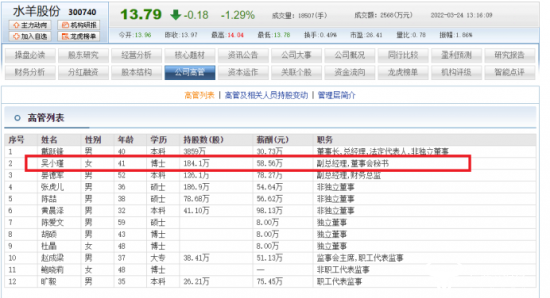 目前吴小瑾仍出任公司的副总经理,并兼任董事会秘书一职。据东方财富网显示,吴小瑾的薪酬为58.56万,持股184.1万,公司另一位副总经理晏德军的薪酬为78.27万。