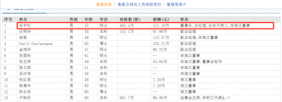 东方财富网显示,张宇松持有公司股份465.4万,年薪为151.16万,是薪酬最高的高管。
