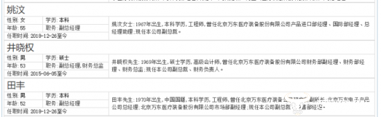 田丰去年被美的聘任为万东医疗副总经理。去年美的首次收购万东医疗股份后以股东身份对公司高管进行了一次调整。美的大将胡自强掌舵,而万东医疗原管理团队则保持稳定。原董事长、总裁兼总工程师谢宇峰被续聘为万东医疗总裁,原万东医疗副总裁田丰、黄家祥、井晓权等续任为公司高级管理人员。