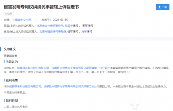 据企查查显示,此案在去年9月迎来最终结果,极米科技撤诉。