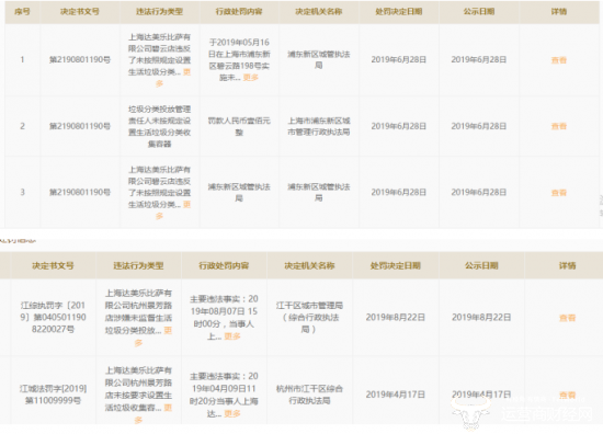 此外,据国家企业信用信息公示信息系统显示,达美乐中国多家分店曾多次因未按规定设置生活垃圾分类收集容器被罚。