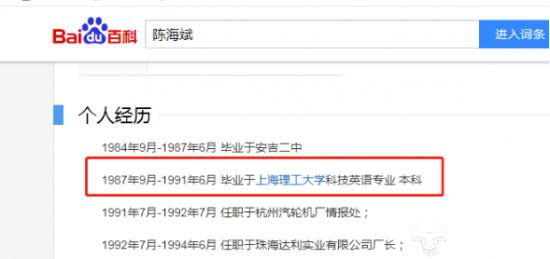 为何会显示他毕业的院校不同呢?据百度百科显示,上海机械学院在1994年更名为华东工业大学,并且在1996年与上海机械高等专科学校合并组建为上海理工大学。事实上,按照时间来看陈海斌当时就读的是上海机械学院。