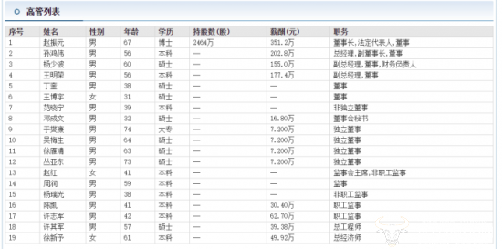在同一报告期内公司四位高管的薪酬情况为,董事长赵振元薪资为351万,总经理兼副董事长孙鸿伟获得202万薪资,杨少波薪资为155万,而和杨少波处于同一级别的公司副总经理王明荣薪酬177万。