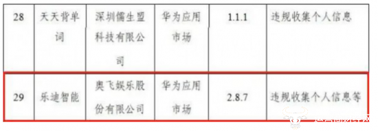 2021年,广东省通信管理局按照工信部APP整治行动部署,积极开展手机应用软件监督检查,检查发现仍有40款软件尚未整改。“乐迪智能”在通报名单内。