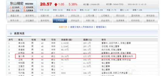 冒小燕能力出众身兼三职,从2012年开始冒小燕在东山精密任职,目前在东山精密担任董事、副总经理、董事会秘书。