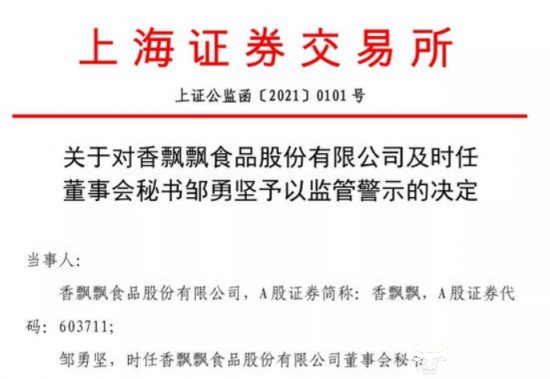 运营商财经网了解到,香飘飘曾多次出现违法违规行为。2016年6月,香飘飘因存在未按优惠价结算和未明示馈赠品数量的不正当价格行为,被处以1万元的行政罚款。同年8月,香飘飘因生产线扩建项目配套的污染防治设施未建成便投入了生产,再次被罚1万元。2021年,香飘飘因信息披露存在明显滞后,公司及董秘受到监管警示。