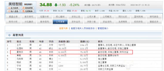 根据东方财富网显示,截止目前夏有庆直接持有公司股份8万股,去年从公司获得的税前报酬总额为75.83万薪酬。