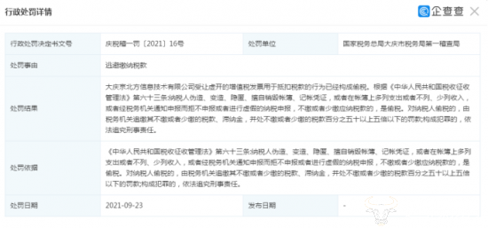 近年来,京北方总部一直合规经营,但旗下分公司大庆京北方信息科技有限公司却因逃避缴纳税款被国家税务总局大庆市税务局第一稽查局处罚。