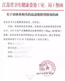 文件显示,江苏省卫健委收到实名举报,反映上市公司仙琚制药为扩大其产品糠酸莫米松鼻喷雾剂销量,给江苏省部分医疗机构医生15元/盒回扣。江苏省卫健委要求各区市卫健委医政处、行风办对此认真核查。