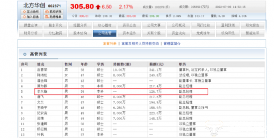 2021年李东旗从公司获得的税前报酬总额126.72万,看起来似乎不少,但是和其他几位副总经理相比起来,还是相差不小。在北方华创的这7位副总当中,副总纪安宽的薪酬最高,为223.03万。