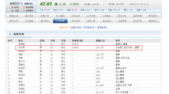 根据东方财富网显示,孙亦军目前持有公司股份1098万,荣秀丽持有5327万股。孙亦军现在的薪酬为219万,是所有已披露薪酬的高管中最高的。