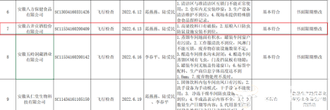 今年7月,在亳州市市场监督管理局对食品生产企业例行飞行检查,结果显示,7家企业的检查结果为基本符合,另外7家企业的检查结果为不符合。对于基本符合的企业,亳州市市场监督管理局的处理意见为书面限期整改。