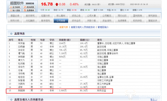 宋关福辞去财务总监后,超图软件就聘任了荆钺坤。