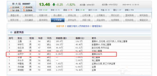 不过,徐芳宁很年轻,未来还有很大的发展空间,目前还持有公司股份8.25万股。
