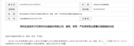 今年6月,兆驰股份及董事长顾伟、总经理欧军、财务总监严志荣又被深圳证监局采取出具警示函的监管措施。