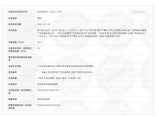 今年7月21日,脱毛仪品牌Ulike关联公司杭州由莱科技有限公司新增一则行政处罚,处罚事由为当事人委托发布的广告内容低俗,违背了良好的社会风尚,被杭州市市场监督管理局罚款30万元。