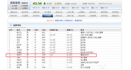 接下来,陈邦灯身上的担子还是不小。根据东方财富网显示,陈邦灯现在持有顾家家居9100股股份,年薪85.28万。