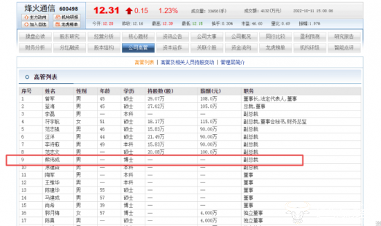 眼下,熊伟成除了是烽火通信副总裁,还是公司宽带业务产出线总裁。其薪酬未披露,但公司大部分副总裁是90万薪资。