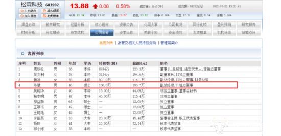 根据东方财富网显示,陈斌现在年薪195.7万,仅次于董事长、总经理周华松的220.3万,略高于副董事长吴文利,比另一副总魏凌多81.6万。