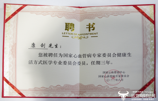 前不久,备受关注的国家心血管病专家委员会健康生活方式医学专业委员会(以下简称“专委会”)于2022年8月5日下午成立,该天同时宣布了专委会委员名单,其中运营商财经网CEO康钊也在名单之列。