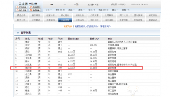 目前,他还另持有公司股份8万股,虽然不如副总经理吴向阳的10.09万股,但是魏洪宽的薪酬是公司现任6位副总经理中最高的。