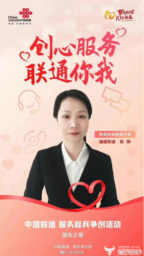 她常说,我只有一次青春,青春是用来奋斗的,不想辜负“一切皆有可能”的时代。在多年的工作中,她先后在客服代表投诉处理、后台质检采编、值班长以及团队管理等多个岗位历练,分析每个用户诉求,认真对待每一个用户,“尽己所能”确保团队工单处理及时率、满意率常年保持省内前列。在今年6月份投诉处理及时率、满意度考评中,陈静两项指标均在全省前茅,并获评福建联通“服务之星”。