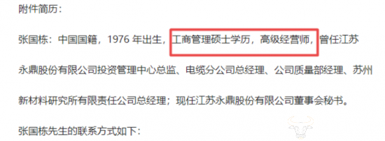 据永鼎股份今年发布的第十届董事会第一次会议决议公告显示, 张国栋出生于1976年,是硕士学历,高级经济师。