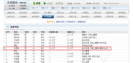 此外,目前,他还兼任武汉永鼎光电子集团有限公司董事。根据东方财富网显示,张国栋持股58.40万,年薪56.13万。