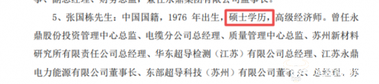 后来,张国栋又兼任起永鼎股份副总经理职务,以及华东超导检测(江苏)有限公司总经理,苏州新材料研究所有限公司、武汉永鼎光电子集团有限公司和江苏永鼎电力能源有限公司董事。